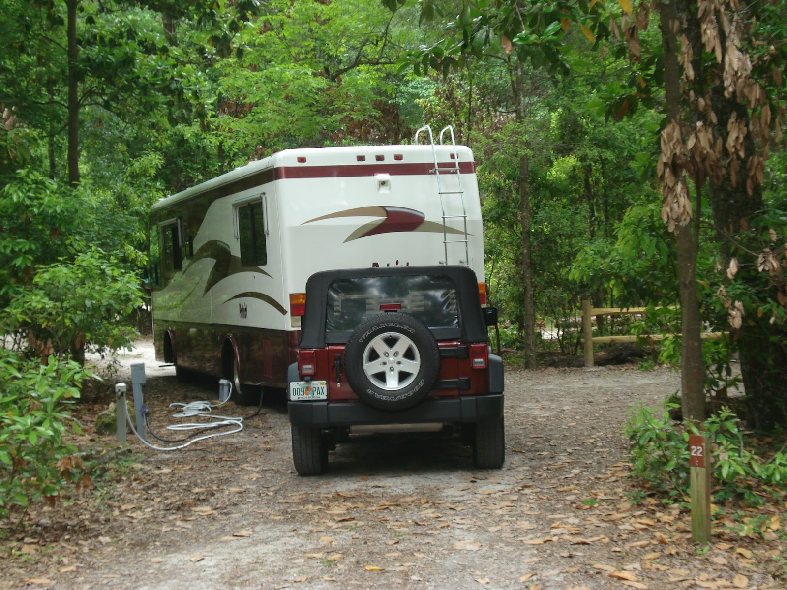 Our camp site in the trees---a pull-through didn't have to unhitch the jeep
